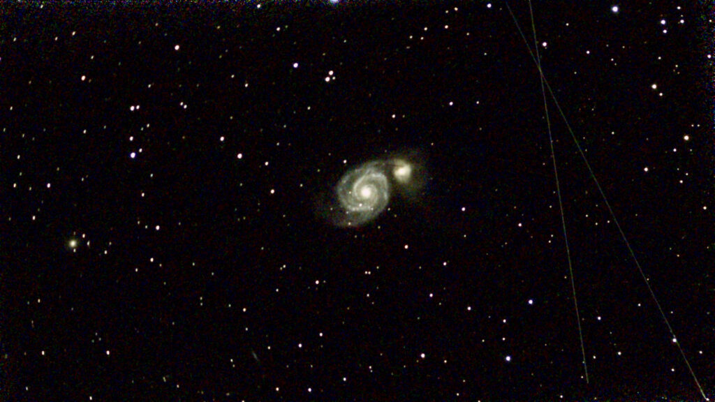 Matthijs liet de Seestar ondertussen indrukwekkende foto’s maken. Messier 51 (botsende sterrenstelsels), Markarian’s Chain (een lange keten van sterrenstelsels) en de Uilnevel (Messier 97, een planetaire nevel).