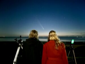 De herfst van vorig jaar bracht nog een heel leuk verschijnsel met zich mee: Komeet C/2023 A3 (Tsuchinshan-ATLAS). We zagen de komeet op de dijk bij Harlingen en later die week af en toe nog een keer tussen de wolken door. Ook lichtende nachtwolken, een maanhalo, een zonnezuil, vallende sterren en verschillende mooie samenstanden konden we van ons lijstje afstrepen.